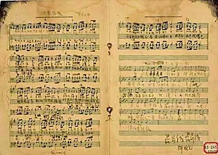 不久后,上海文藝界組織抗日救亡演劇隊奔赴各地,以文藝形式宣傳抗日。1937年底,賀綠汀與夏衍、崔嵬等上海救亡演劇隊一隊成員抵達山西前線。在臨汾城郊的八路軍辦事處,他們受到八路軍總部少將參謀處長兼八路軍駐晉辦事處主任彭雪楓的熱情接待。彭雪楓表示,此時急需一批優(yōu)秀文藝作品來鼓舞全國人民的抗戰(zhàn)熱情。因此,彭雪楓除了向隊員詳盡介紹山西及全國抗戰(zhàn)基本情況外,還特意送來一批有關共產(chǎn)黨軍隊游擊戰(zhàn)爭的資料。
