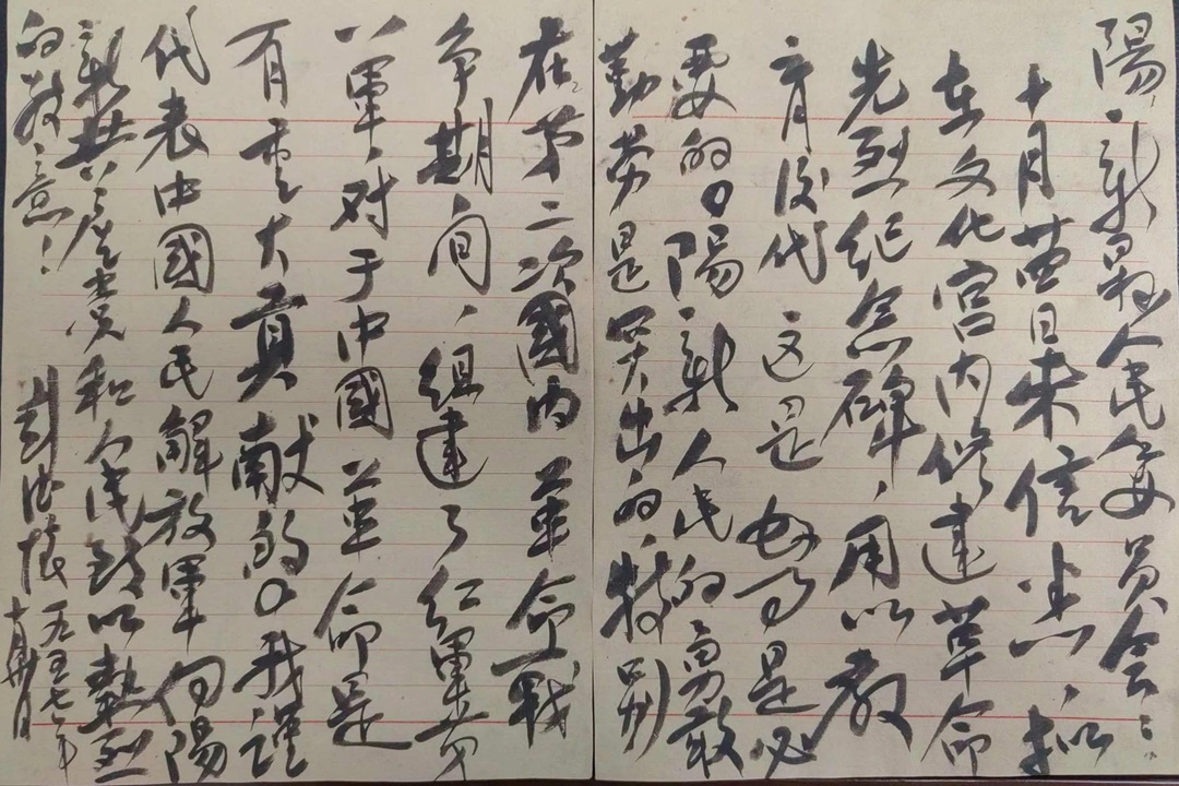 圖為1957年,時(shí)任國防部長彭德懷給陽新縣人民委員會(huì)回信