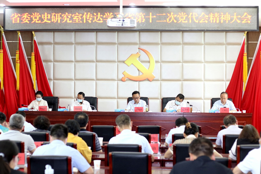 6月22日,省委黨史研究室召開全室黨員干部大會,傳達學習省第十二次黨代會精神。室主任何光耀主持會議并講話,傳達了大會精神。室領導班子成員、廳級干部和全室黨員干部參加會議。