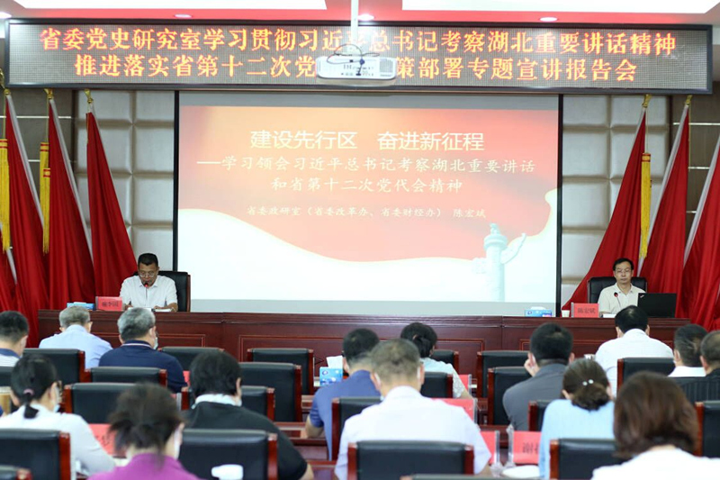 7月20日,省委黨史研究室舉辦學(xué)習(xí)貫徹習(xí)近平總書記考察湖北重要講話精神、推進(jìn)落實(shí)省第十二次黨代會(huì)決策部署宣講報(bào)告會(huì)。邀請(qǐng)省委宣講團(tuán)成員、省委政研室(省改革辦、省委財(cái)經(jīng)辦)副主任陳宏斌作專題宣講,室副主任施李國(guó)主持會(huì)議并講話,全室黨員干部職工參加。