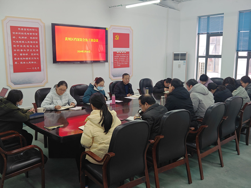 2月20日,黃岡市黃州區(qū)檔案館(史志研究中心)召開2024年工作部署動員會。會議由區(qū)檔案館(史志研究中心)館長(主任)陶楊主持,全體干部參加會議。