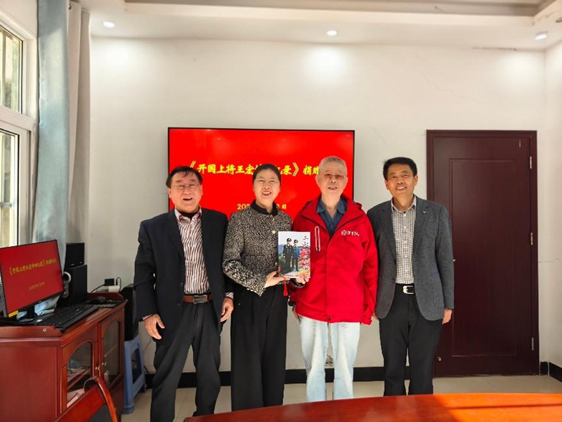 4月3日,黃岡市史志研究中心舉行捐贈儀式并召開座談會,麻城籍開國上將王宏坤將軍長子王新中向中心捐贈《開國上將王宏坤回憶錄》,市史志研究中心主任江明代表中心接受捐贈。