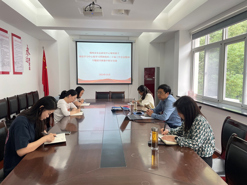10月12日,荊州市史志研究中心領導班子理論學習中心組學習貫徹黨的二十屆三中全會精神專題讀書班舉行集中研討交流。市史志研究中心主任王剛主持會議并講話。
