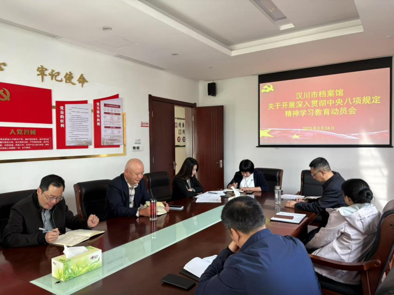 3月24日,漢川市檔案館(史志研究中心)召開深入貫徹中央八項規(guī)定精神學(xué)習(xí)教育動員部署會,會議傳達(dá)學(xué)習(xí)漢川市深入貫徹中央八項規(guī)定精神學(xué)習(xí)教育實施方案,部署市檔案館(史志研究中心)深入貫徹中央八項規(guī)定精神學(xué)習(xí)教育工作。