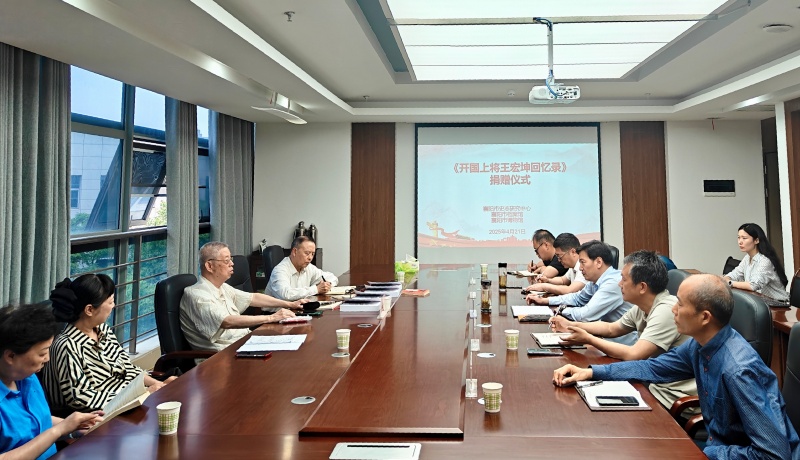 4月21日,開國上將王宏坤將軍長子王新中一行來到襄陽,向市史志研究中心、市檔案館、市博物館、市烈士陵園管理處,捐贈《開國上將王宏坤回憶錄》(以下簡稱《回憶錄》)。