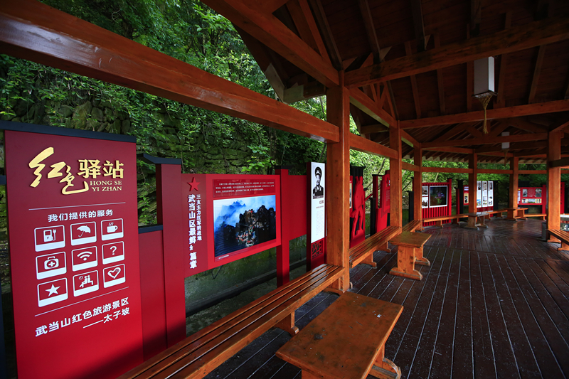 武當(dāng)山紅色旅游線路為主要圍繞賀龍率領(lǐng)紅三軍建立以武當(dāng)山為中心的鄂西北革命根據(jù)地紅色線路為主線,打造了武當(dāng)山黨員政治生活館、“鄂西北革命根據(jù)地”標(biāo)識牌、紅色游客中心、太子坡紅色驛站、八仙觀紅色民兵哨所、索道紅色長廊、紫霄宮紅三軍醫(yī)院(司令部)教育基地、南巖紅色餐廳等紅色旅游景點。路線設(shè)計以圖片、實物(場景)再現(xiàn)、人物故事展示等方式,突出游客的參與性與互動性。通過打造紅色旅游線路,充分展示以武當(dāng)山為中心的鄂西北豐富的紅色文化資源,以這種紅色旅游方式,讓游客聆聽武當(dāng)山紅色故事,感受武當(dāng)山紅色文化氛圍,重溫和學(xué)習(xí)紅色革命歷史,為慶祝中國共產(chǎn)黨建黨100周年賀禮。