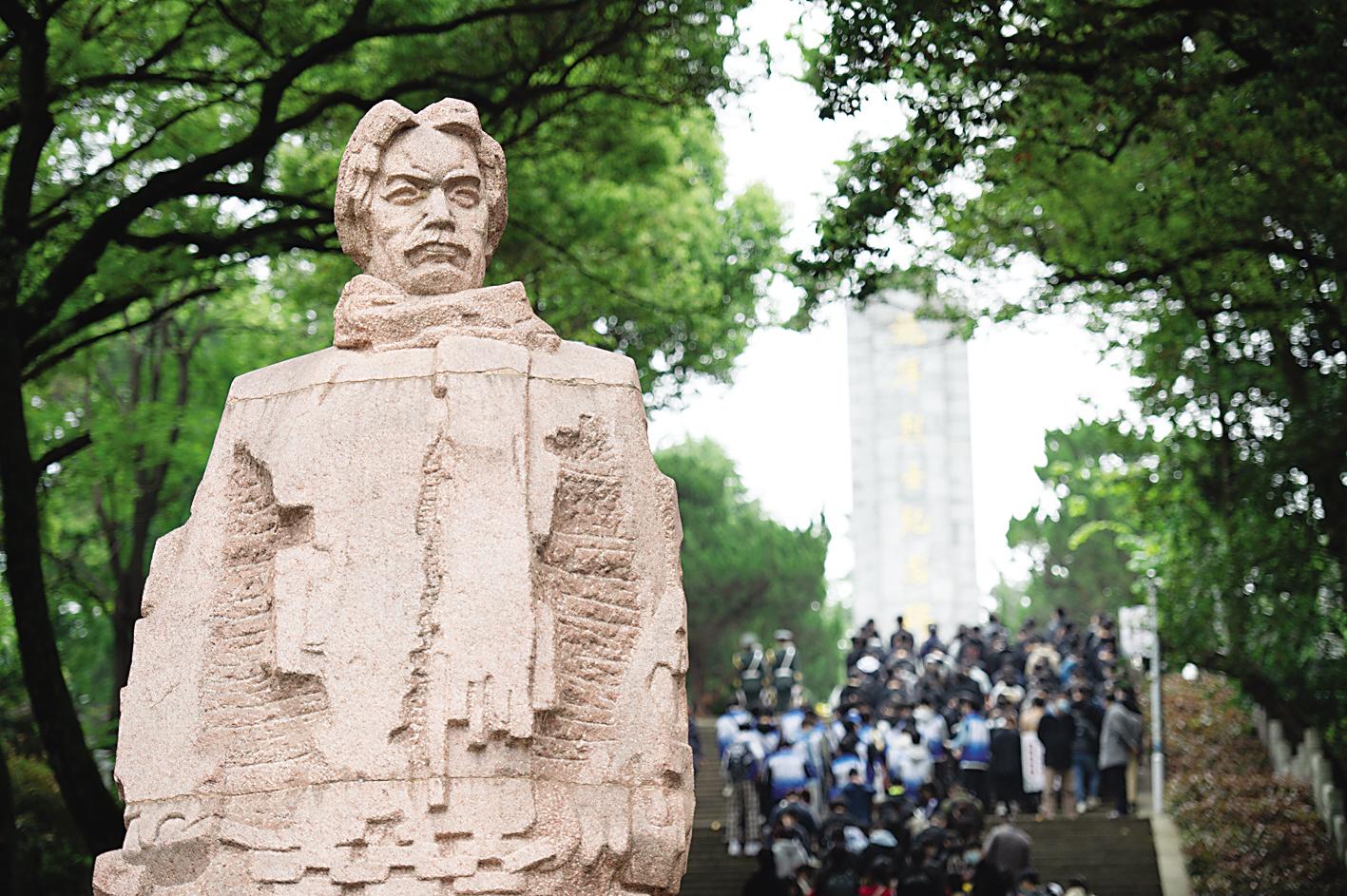 市民參觀武漢施洋烈士陵園。施洋是五四運動中成長起來的著名進步律師,擔任京漢鐵路總工會法律顧問。1923年2月京漢鐵路工人大罷工期間被捕,于2月15日在武昌慘遭殺害。