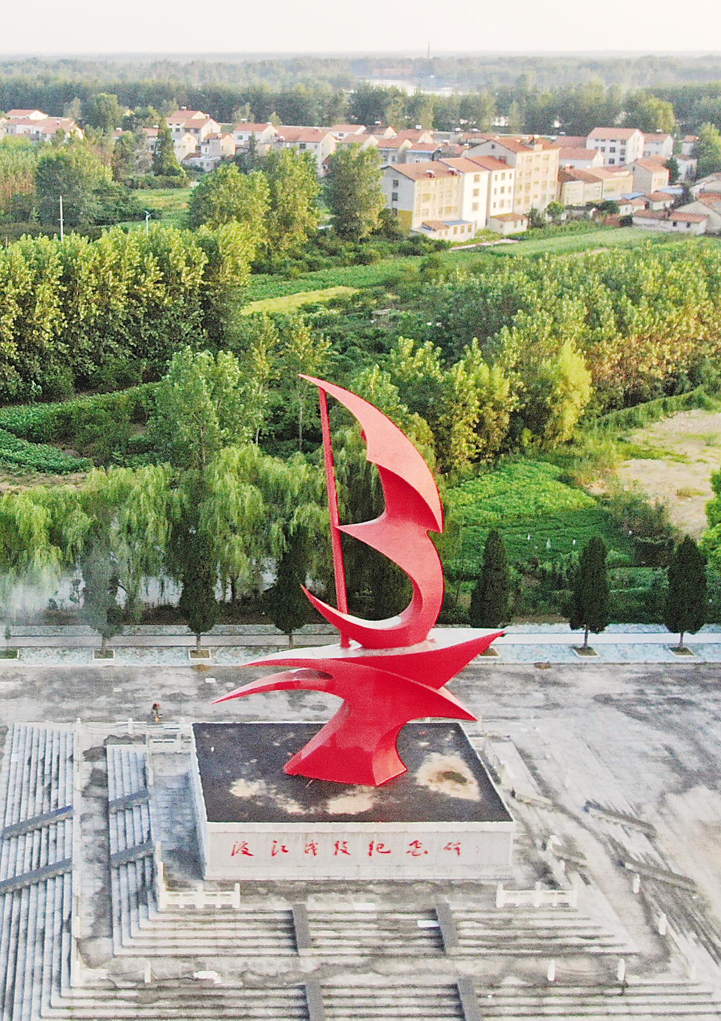 團風渡江戰(zhàn)役紀念碑鳥瞰。1949年5月14日,中國人民解放軍第四野戰(zhàn)軍在團風至武穴長江段上發(fā)起渡江戰(zhàn)役。