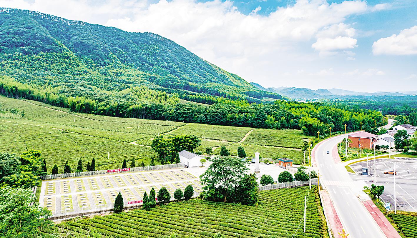 赤壁市羊樓洞烈士陵園坐落在一片茶園中。這里安葬著142名抗美援朝時期的革命烈士。羊樓洞是“萬里茶道”的重要節(jié)點,如今當?shù)匾劳胁栀Y源,挖掘茶文化,積極打造茶旅漫游休閑目的地。