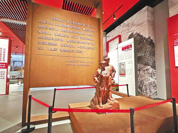 紅二十五軍長(zhǎng)征集結(jié)革命歷史展一角的小紅軍戰(zhàn)士塑像,紅二十五軍以“兒童軍”著名。 (湖北日?qǐng)?bào)全媒記者 龔雪 攝)