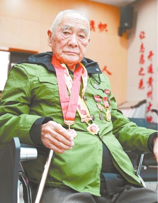 94歲的老黨員陳世禮,先后參加過(guò)淮海戰(zhàn)役、渡江戰(zhàn)役、抗美援朝戰(zhàn)爭(zhēng),在朝鮮戰(zhàn)場(chǎng)上凍掉10根腳趾,在槍林彈雨中九死一生,榮立三等功兩次。