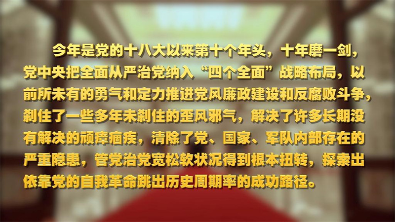 他強(qiáng)調(diào),總結(jié)運(yùn)用黨的百年奮斗歷史經(jīng)驗(yàn),堅(jiān)持黨中央集中統(tǒng)一領(lǐng)導(dǎo),堅(jiān)持黨要管黨、全面從嚴(yán)治黨,堅(jiān)持以黨的政治建設(shè)為統(tǒng)領(lǐng),堅(jiān)持嚴(yán)的主基調(diào)不動(dòng)搖,堅(jiān)持發(fā)揚(yáng)釘釘子精神加強(qiáng)作風(fēng)建設(shè),堅(jiān)持以零容忍態(tài)度懲治腐敗,堅(jiān)持糾正一切損害群眾利益的腐敗和不正之風(fēng),堅(jiān)持抓住“關(guān)鍵少數(shù)”以上率下,堅(jiān)持完善黨和國(guó)家監(jiān)督制度,以偉大自我革命引領(lǐng)偉大社會(huì)革命,堅(jiān)持不懈把全面從嚴(yán)治黨向縱深推進(jìn)。
