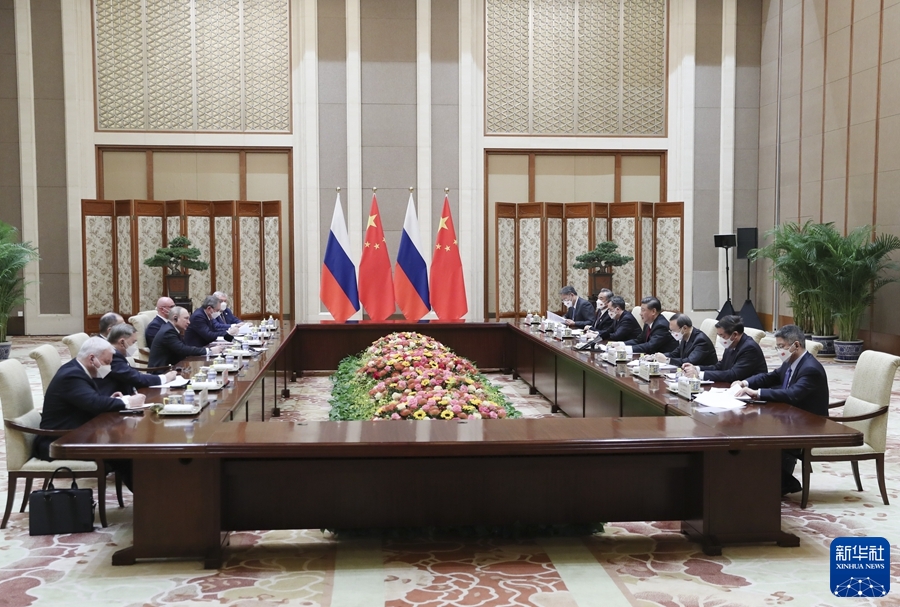 新華社北京2月4日電(記者溫馨)國(guó)家主席習(xí)近平2月4日下午在北京釣魚臺(tái)國(guó)賓館同俄羅斯總統(tǒng)普京舉行會(huì)談。兩國(guó)元首在熱烈友好的氣氛中就中俄關(guān)系以及事關(guān)國(guó)際戰(zhàn)略安全穩(wěn)定的一系列重大問(wèn)題深入充分交換了意見(jiàn)。