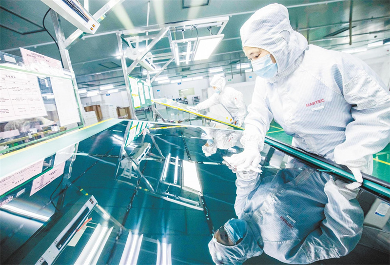 11月18日,赫得納米科技(黃石)有限公司無塵車間,工人趕制顯示屏訂單。