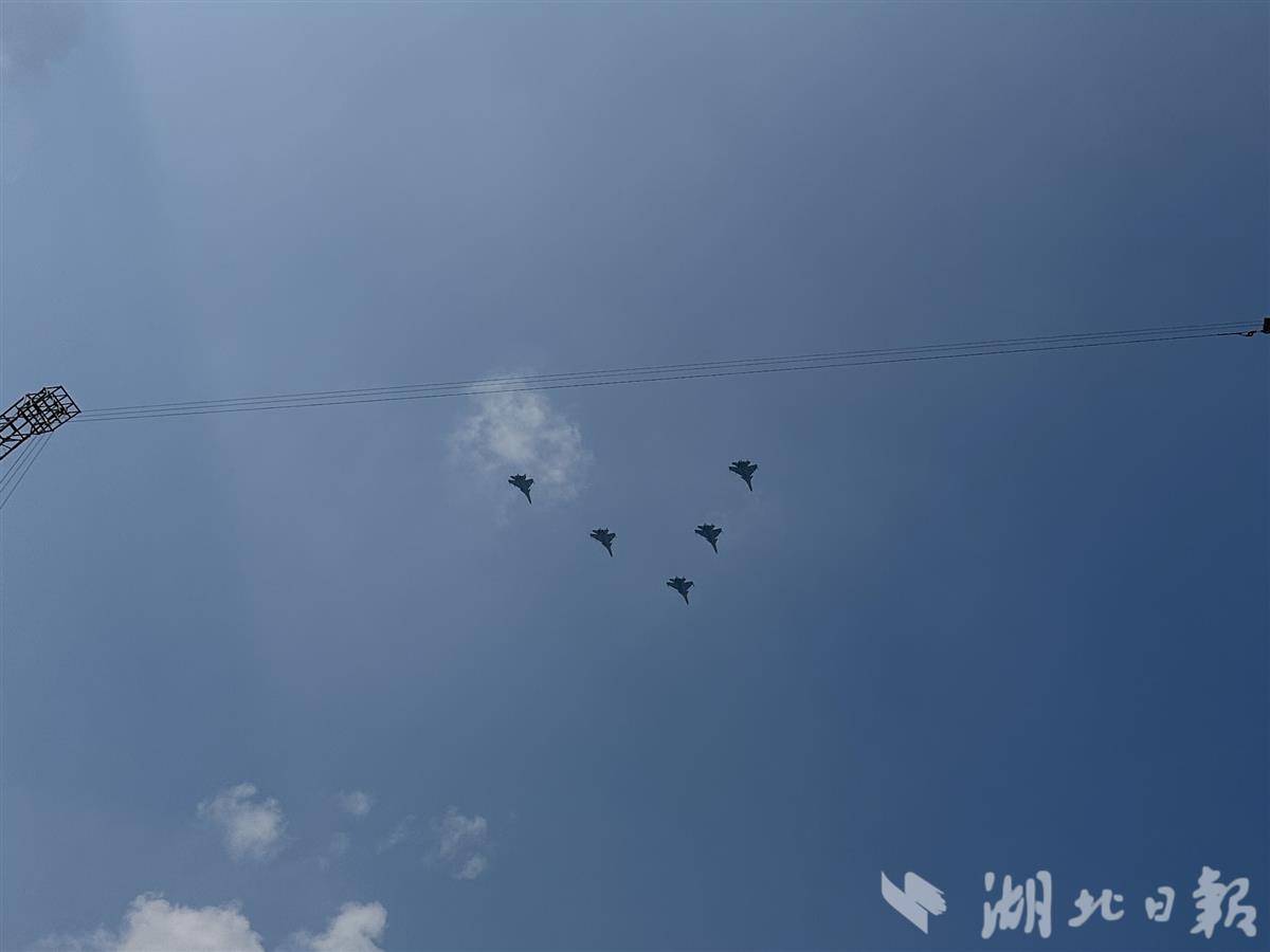 預(yù)警指揮機梯隊接受檢閱。(湖北日報全媒記者 許曠 攝)