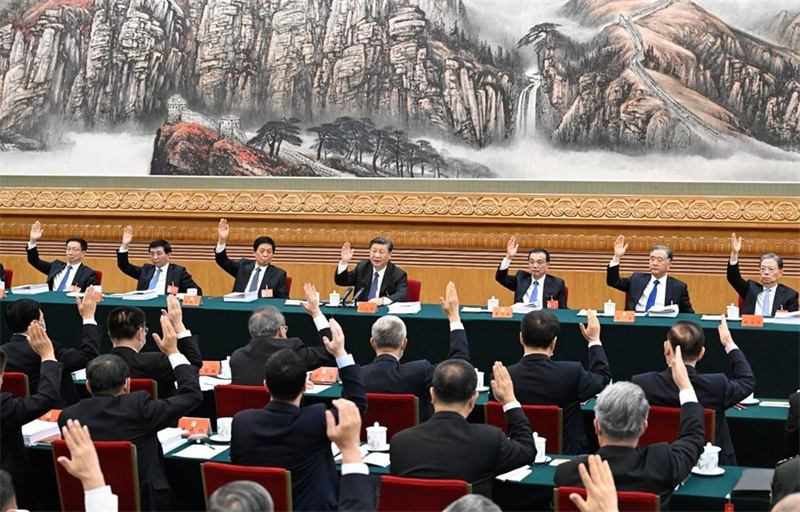 10月18日,中國(guó)共產(chǎn)黨第二十次全國(guó)代表大會(huì)主席團(tuán)在北京人民大會(huì)堂舉行第二次會(huì)議。習(xí)近平、李克強(qiáng)、栗戰(zhàn)書、汪洋、王滬寧、趙樂(lè)際、韓正等出席會(huì)議。新華社記者 李學(xué)仁 攝