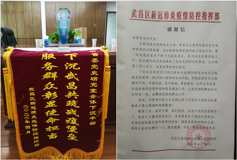 武昌區(qū)贈(zèng)送錦旗、紀(jì)念杯和感謝信