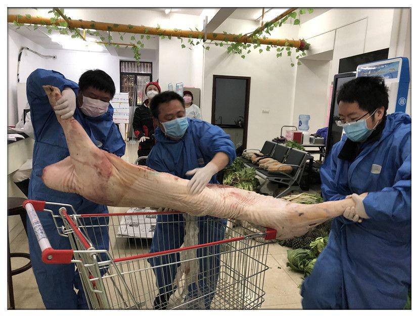 3月8日下午,湖北省委黨史研究室下沉后湖同安社區(qū)工作組接到送菜任務(wù)。今天要送的戶數(shù)較多,且品種非常豐富,包含大米、豬肉、鴨、雞蛋、青菜等,配菜和裝“車”花費(fèi)了較多時(shí)間。臨近出發(fā),天空開始下起小雨。社區(qū)同志說(shuō):“看天氣,這雨應(yīng)該不會(huì)小,你們明天再去送吧�!毕氲截i肉和一些青菜不能存放太久,再加上有些居民也急需這些愛心菜,工作組沒(méi)有絲毫遲疑,在組長(zhǎng)帶領(lǐng)下果斷出發(fā)。