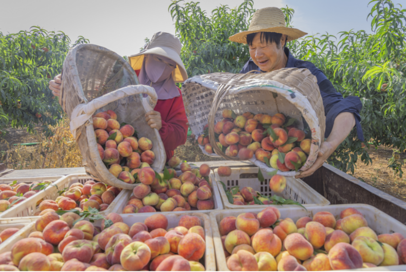 鐘勇介紹,今年桃子收成不錯,每畝成品桃產(chǎn)量在2000公斤左右,預(yù)計今年8000畝桃子產(chǎn)值過億元。