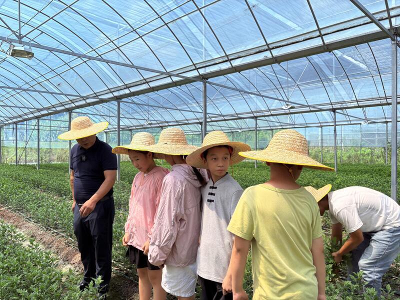 孩子們?cè)诨鹗逖h(huán)種植產(chǎn)業(yè)園大棚研學(xué)打卡