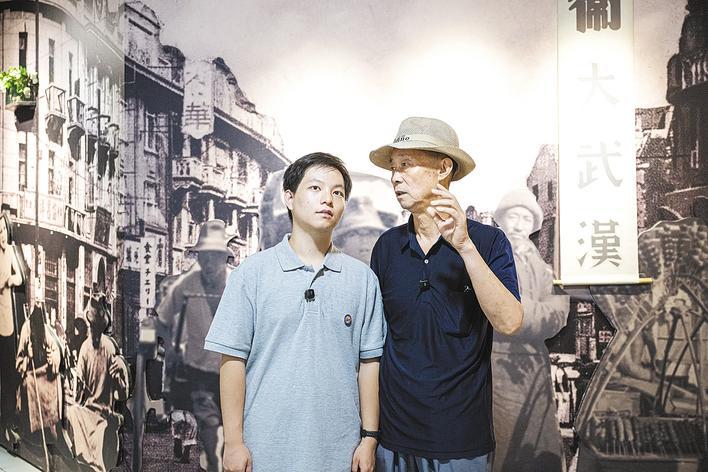 8月13日,孫蔚如將軍之子孫存京攜孫子孫和直,從陜西西安趕到武漢,在受降堂追思抗戰(zhàn)先輩。(湖北日報(bào)全媒記者 任勇 攝)