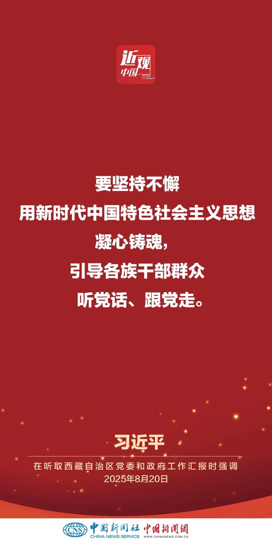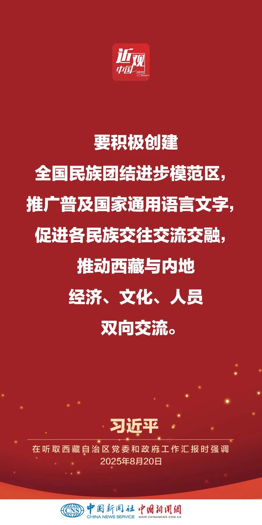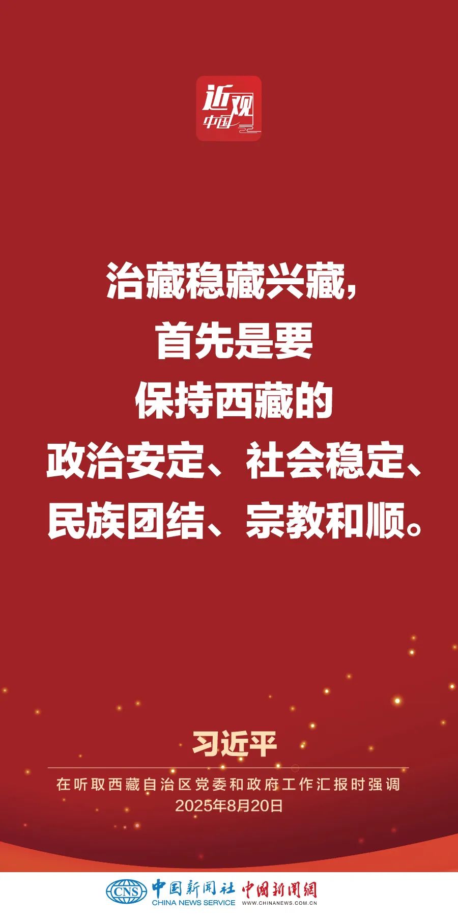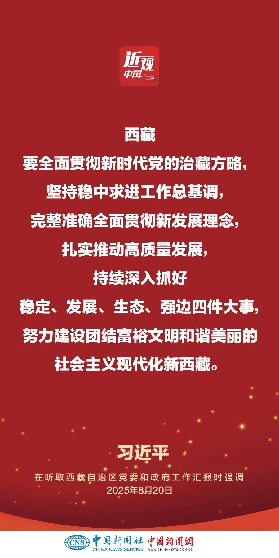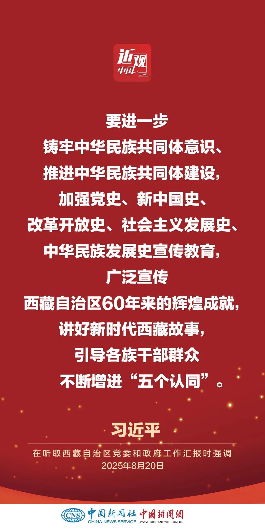 率中央代表團(tuán)出席西藏自治區(qū)成立60周年慶�;顒拥闹泄仓醒肟倳�、國家主席、中央軍委主席習(xí)近平,8月20日聽取西藏自治區(qū)黨委和政府工作匯報(bào)。他強(qiáng)調(diào)——