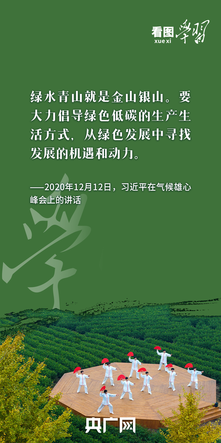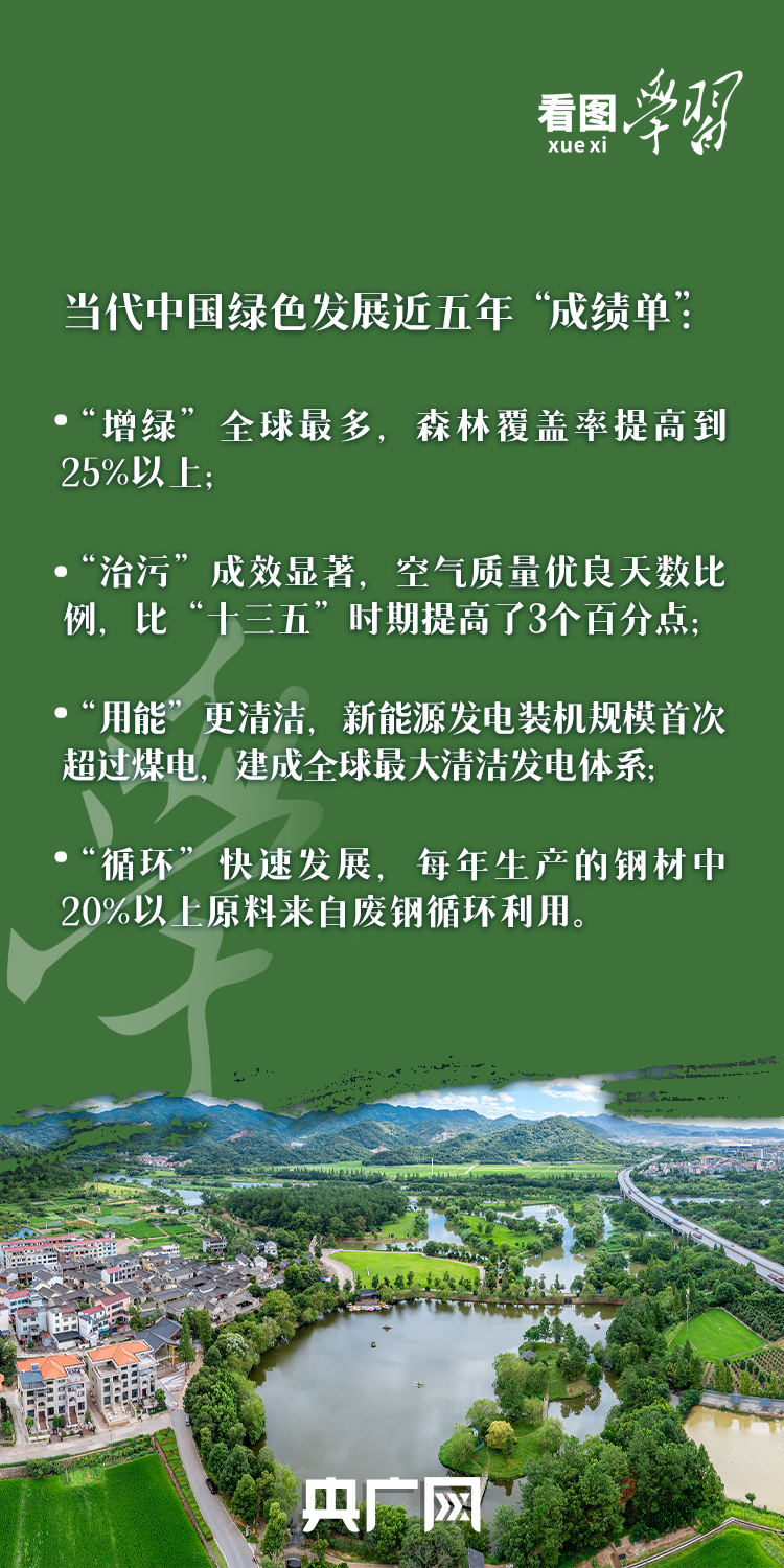 今天的中國,“綠水青山就是金山銀山”理念已經(jīng)深入人心,綠色發(fā)展成為當(dāng)代中國鮮明的底色。新時代新征程,我們要在習(xí)近平生態(tài)文明思想指引下,進(jìn)一步踐行綠色低碳的生產(chǎn)生活方式,從綠色發(fā)展中尋找更多發(fā)展機遇,讓高質(zhì)量發(fā)展的底色更亮、成色更足!