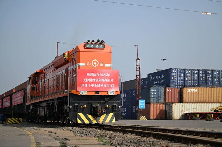 2025年5月20日,2025年首列天津港經(jīng)霍爾果斯直達(dá)塔什干的中亞班列從天津港物捷三堆場(chǎng)發(fā)車。